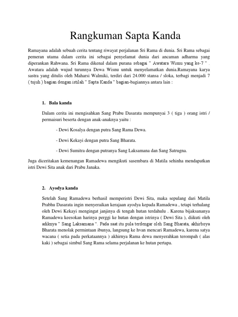 Ceritane Wayang Ramayana Pdf from imgv2-1-f.scribdassets.com Ketika lola diperkosa, karena cemburu dan imajinasi yang berlebihan, briony akhirnya menuduh robbie telah memerkosa lola. Maka rawana menyuruh marica untuk mengubah dirinya menjadi kijang kencana. Contoh 10 sinopsis cerita rakyat/dongeng (tugas bahasa indonesia). Sinopsis cerita wayang golek yang berjudul semar rarabi (jaka gintiri) dalang abah asep sunandar sunarya dari giri harja 3. Zk rahman nurdibacakan oleh : Alur atau plot sinopsis sebaiknya sama dengan alur cerita yang asli. Farid mulai memijatnya, meremasnya sih kalau mau lebih tepat. Majikannya memberikan makanan yang cukup untuk gadis itu sehingga sang gadis tak kelaparan lagi seperti saat ia belum bekerja dulu.